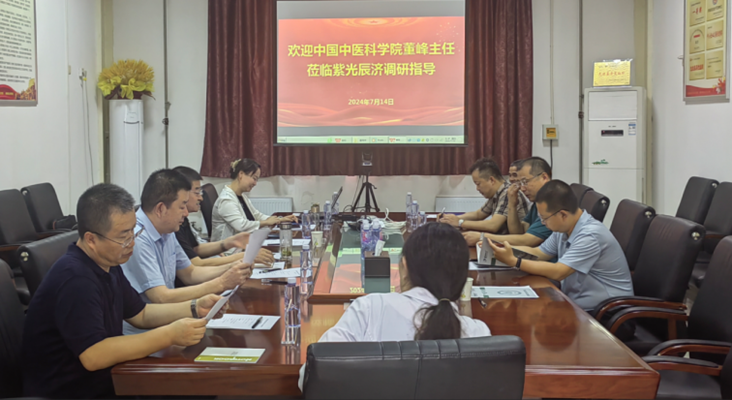 7月14日,素有中国最美医生之称的中国中医科学院副主任医师、调心堂创始人董峰一行莅临紫光辰济药业进行调研指导。乐鱼(中国)董事长李青山、总经理冯建利及公司领导班子成员陪同并参加了调研活动。